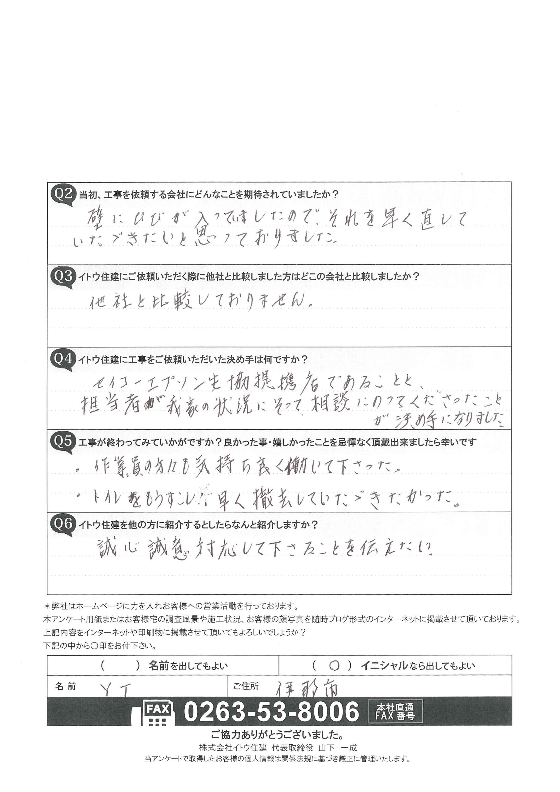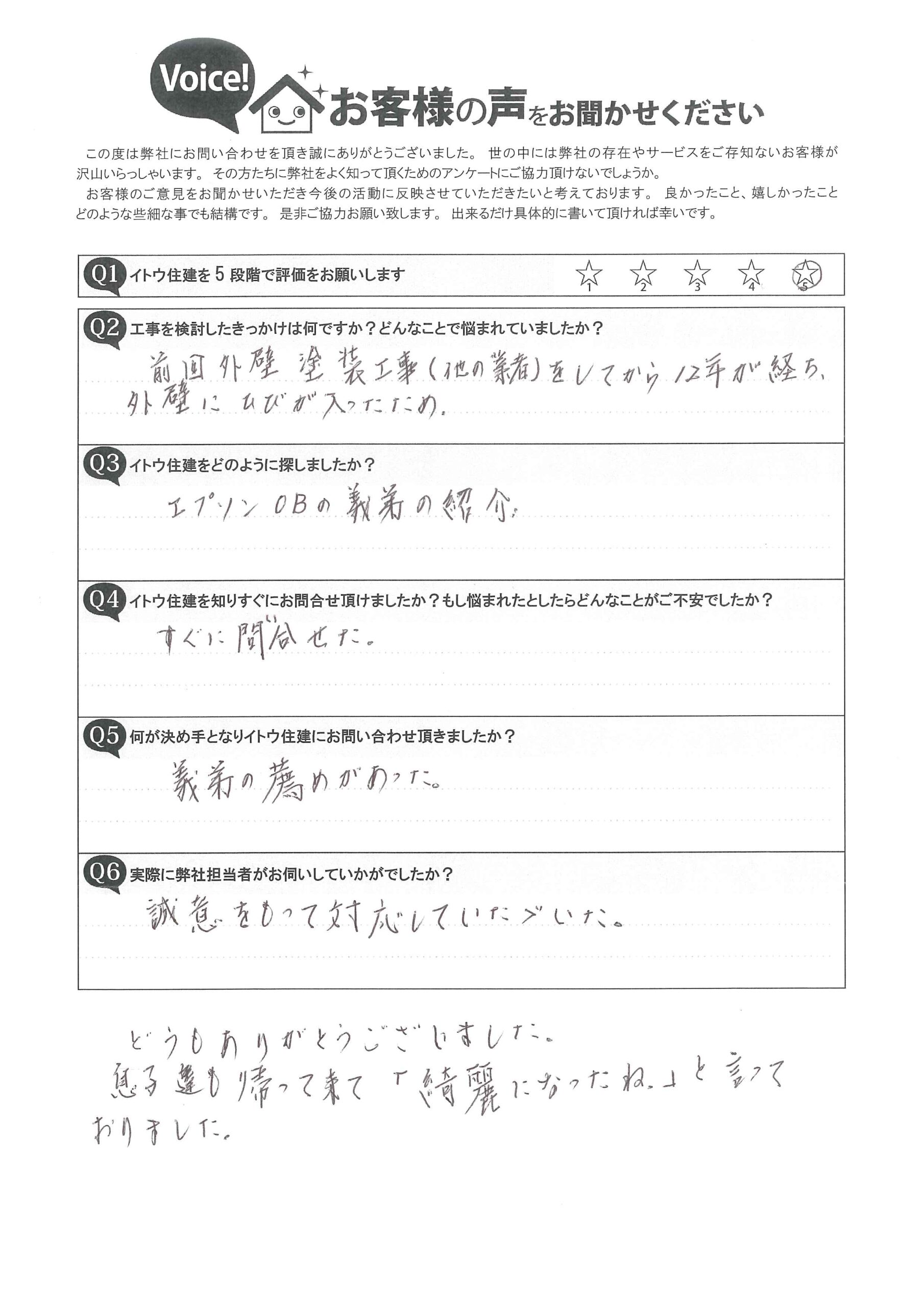 伊那市|外壁塗装を行いましたお施主様からご感想を頂きました