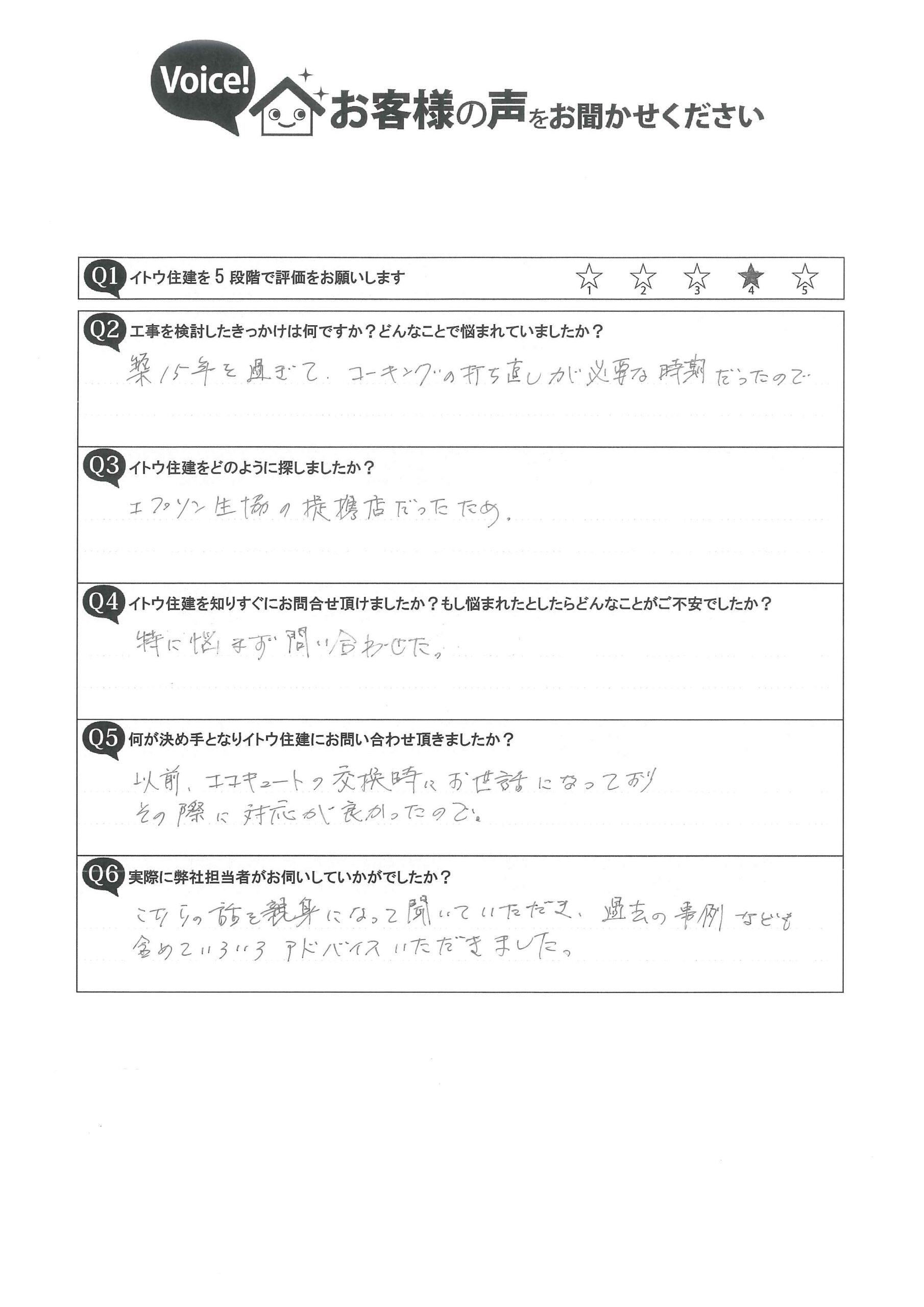 フッ素樹脂塗料外壁塗装のお施主様からご感想を頂きました。