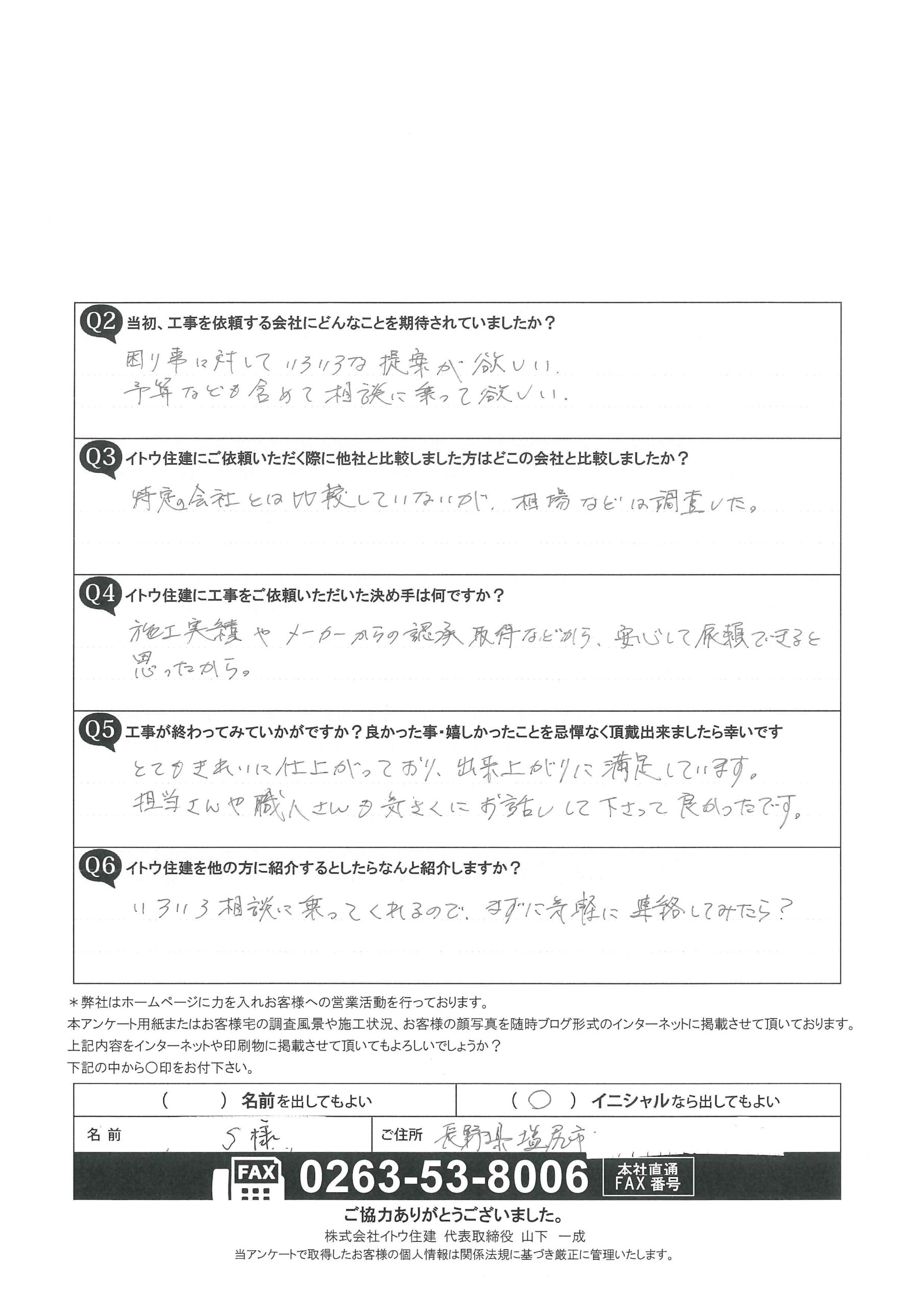 施工メーカーからの承認取得などから、安心して依頼できると思ったから。