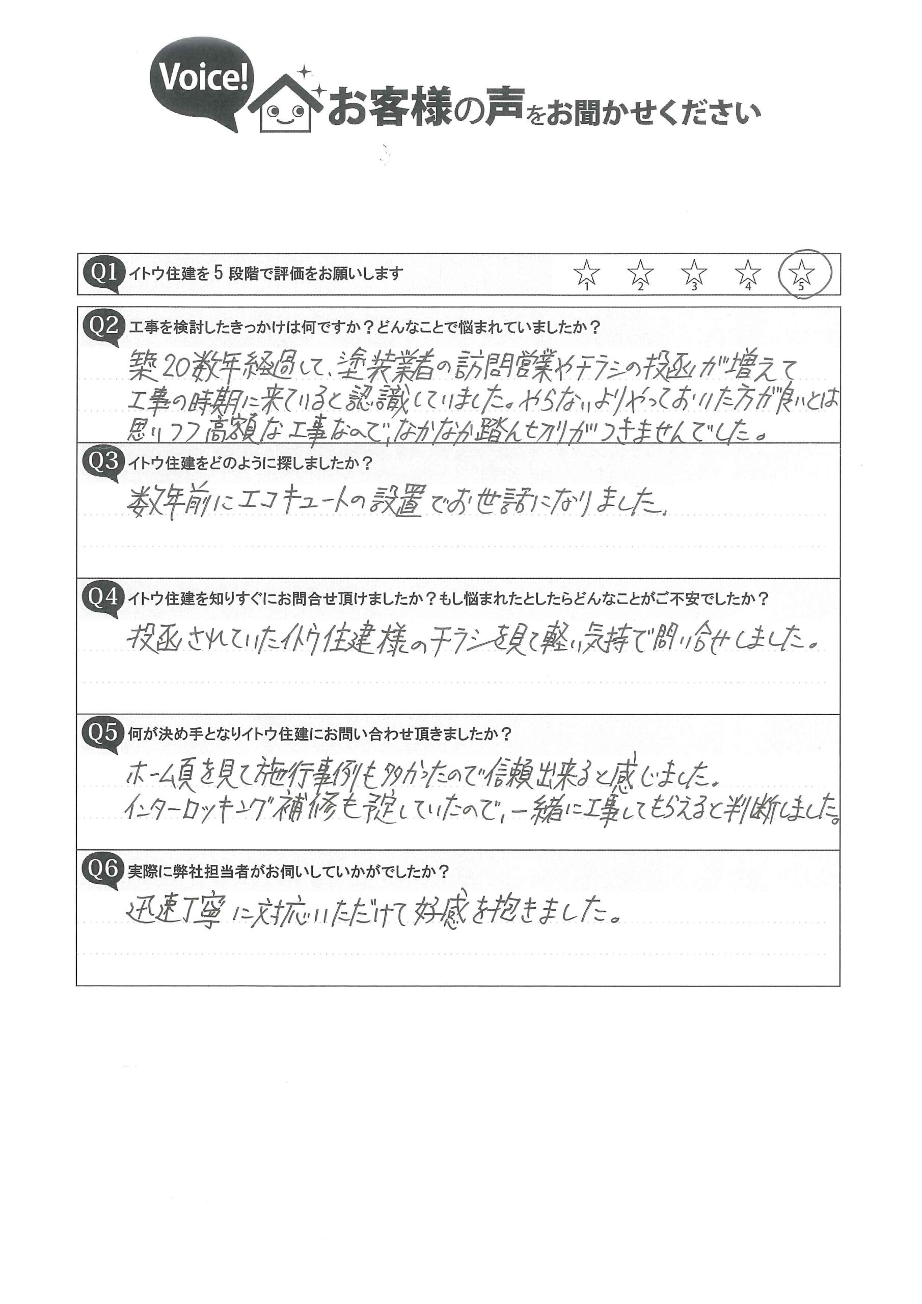 ホーム頁を見て施工事例も多かったので信頼できると感じました。インターロッキング補修も予定していたので、一緒に工事してもらえると判断しました。