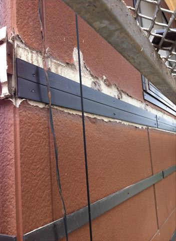 今回のケイミュウはる一番は上下張り分けの為張り分け箇所(幕板のあった箇所)に下地補強の為、樹脂胴縁を横に入れてあります。(金属サイデイングの役物を多く使うため)