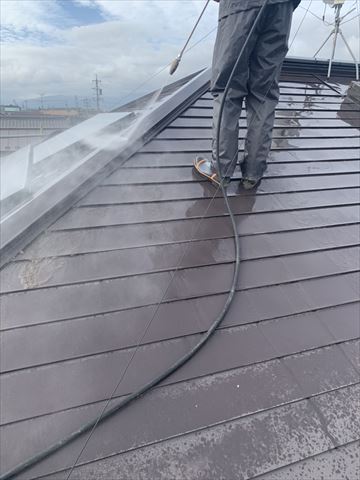 こちらのサイディング材の模様は横ラインのくぼみが細く深い為に、念入りに洗浄していきます。