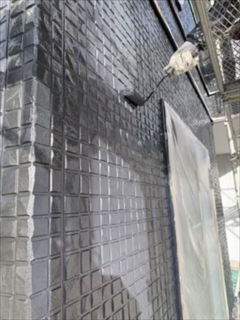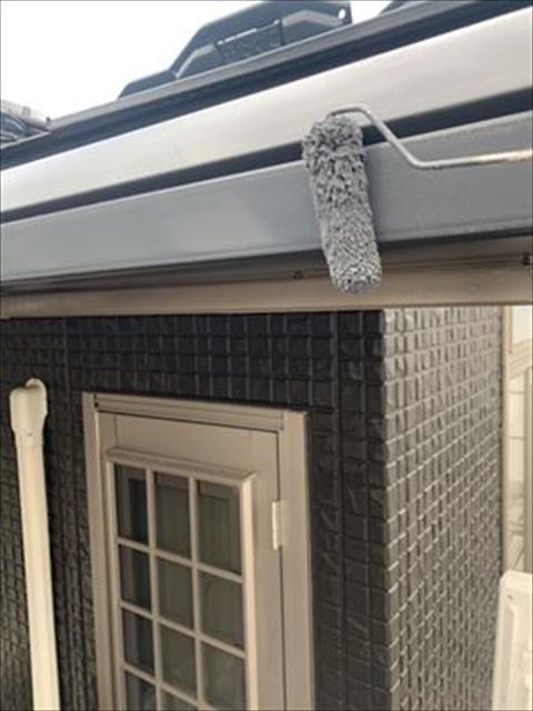 上塗りです。以外にサイディングの柄の凹凸差があるために、塗り残しが無いように丁寧に仕上げました。