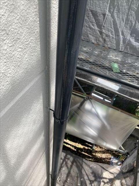 付帯塗装です。今回の雨樋は金属製ですので錆止めプライマーを下塗りしまして、弱溶剤で仕上げます。今回使用いたしました弱溶剤は関西ペイントの、スーパーシリコンルーフです。錆止めプライマーはリフォームサミット(関西ペイント)のRSバリアです。このRSバリアは2液型ですので密着が強い物となります。上塗りがいくら耐候性が良くても下塗りの密着が弱くては残念ですよね。