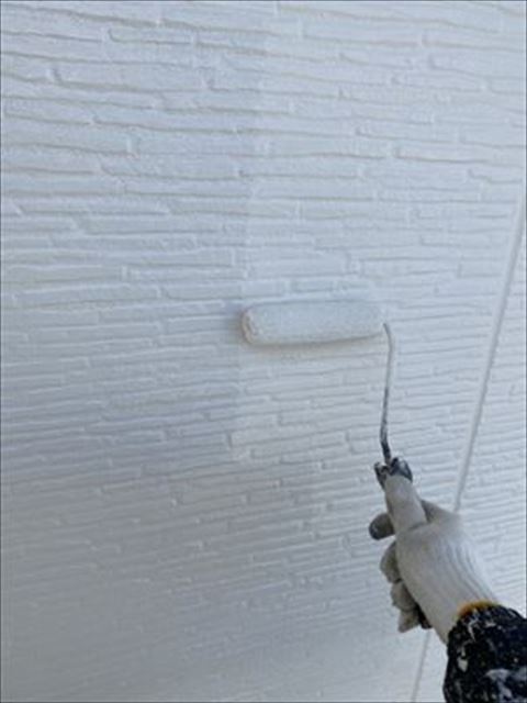 安曇野市で、パナホーム住宅の外壁塗装の下塗りをしているところです。専用の下塗り材、AGCコーテック(旭硝子)の「ボンフロン水性用プライマーSエナメル」を惜しみなくたっぷりと塗っていきます。下塗りの「材料」と「施工の仕方」によっては、どんなに高級な上塗り材を使っても浮いてきたり剥がれたりしてしまい、無駄になってしまいます。