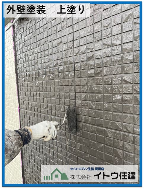 屋根と同じく塗料の持つ機能を塗装する工程です。