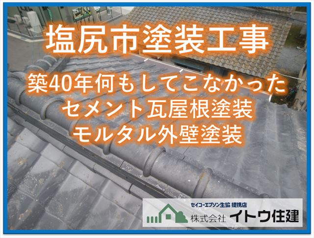 塩尻市塗装工事|築40年何もしてこなかったセメント瓦屋根塗装モルタル外壁塗装