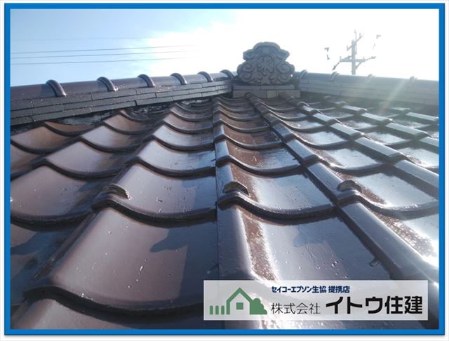 多分早めのメンテナンスをしてきた同じセメント瓦とモルタル外壁と、今回の40年で初めてメンテナンスをしたセメント瓦とモルタル外壁を比べると、今回の屋根外壁のほうが新しい塗膜の劣化は早くなると思います。可能な対候性が期待できないということです。今回はそれをご了承いただき塗装工事を行いましたが、本来は屋根葺き替え、外壁カバー工法をしなければという状態でした。早めにしかも定期的にメンテナンスを行えば余計な費用も掛かりません。屋根も外壁も24時間365日雨風から私たちを守ってくれています。少し気にかけてあげて適度なメンテナンスをしてあげてください