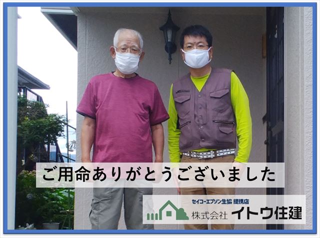 今回は隣近所の工事のごあいさつでご近所をうかがっていた時にご依頼いただいた工事でした。たまに工事のご挨拶の時や、工事中にうちもやってほしいというご依頼をいただきことがあります。私たちは工事の前には必ずご近所にご迷惑をおかけします、いついつまでこちらで工事させていただきますというようなご挨拶を近隣の方々にいたします。当然のことではありますが、ご近所から工事のご依頼をいただくとご近所挨拶もおろそかにできないと自覚しました。