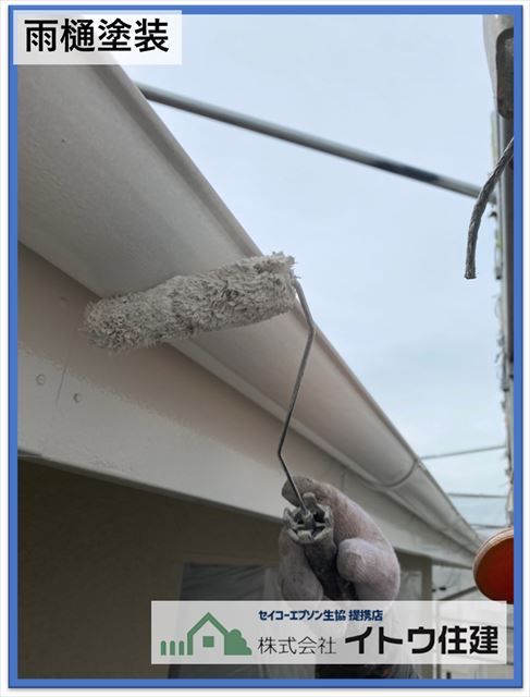 最後に雨樋や雨樋がついている面(鼻隠し)、屋根の側面(破風 はふ)などの付帯個所を塗って工事終了です。