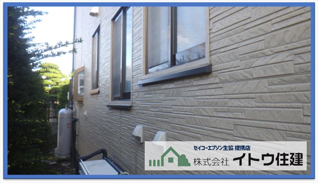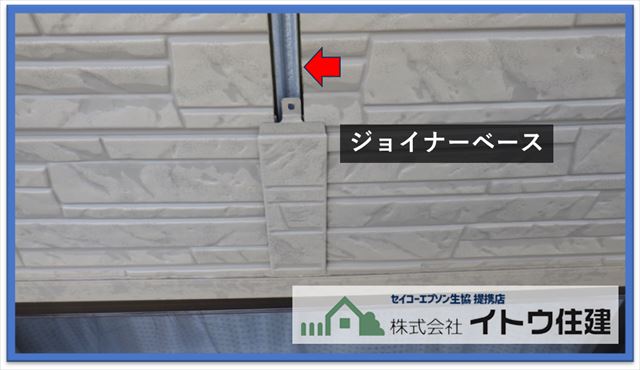 こちらがジョイナーカバーと出隅カバーを取り付けたところです。両方とも篏合式で嵌めこむので動くことはありませんし、内側のスポンジのパッキンで雨が入ることもありません。シーリングを使わないので今後シーリングのメンテナンスをする必要もありません。今回は壁材と同質のカバー材を使いましたが、柄がなく色だけ同じカバー材もあります。費用が家1件のサイディング工事で20万円くらい変わるので、費用を抑えたいということであれば同色のカバー材でもいいと思います。