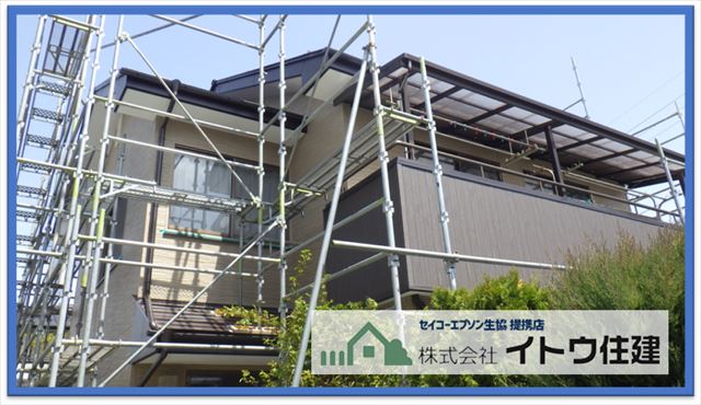 足場を外して工事終了です。今回は屋根に高耐久フッ素樹脂塗料ルミステージ、外壁にフッ素塗装金属サイディングはる一番を使用しました。いずれもAGCコーテックのフッ素う樹脂塗料を使用しているので、塗膜のメンテナンスは長期間必要ありません。また外壁はシーリングを使っていないのでこのメンテナンスも必要ありません。しばらくは何もしなくても大丈夫です。