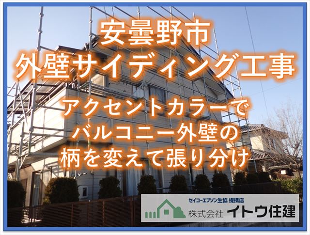 安曇野市外壁サイディング工事|アクセントカラーでバルコニー外壁の柄を変えて張り分け