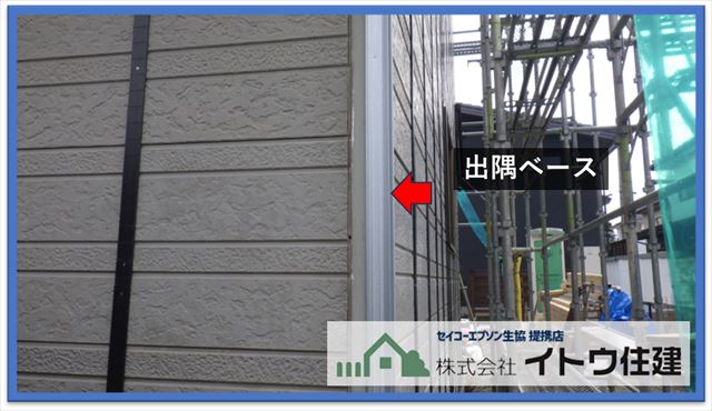 出隅ベース同じく金属サイディングが直角に交わる部分で出隅カバーを付けるための下地として取り付けます。