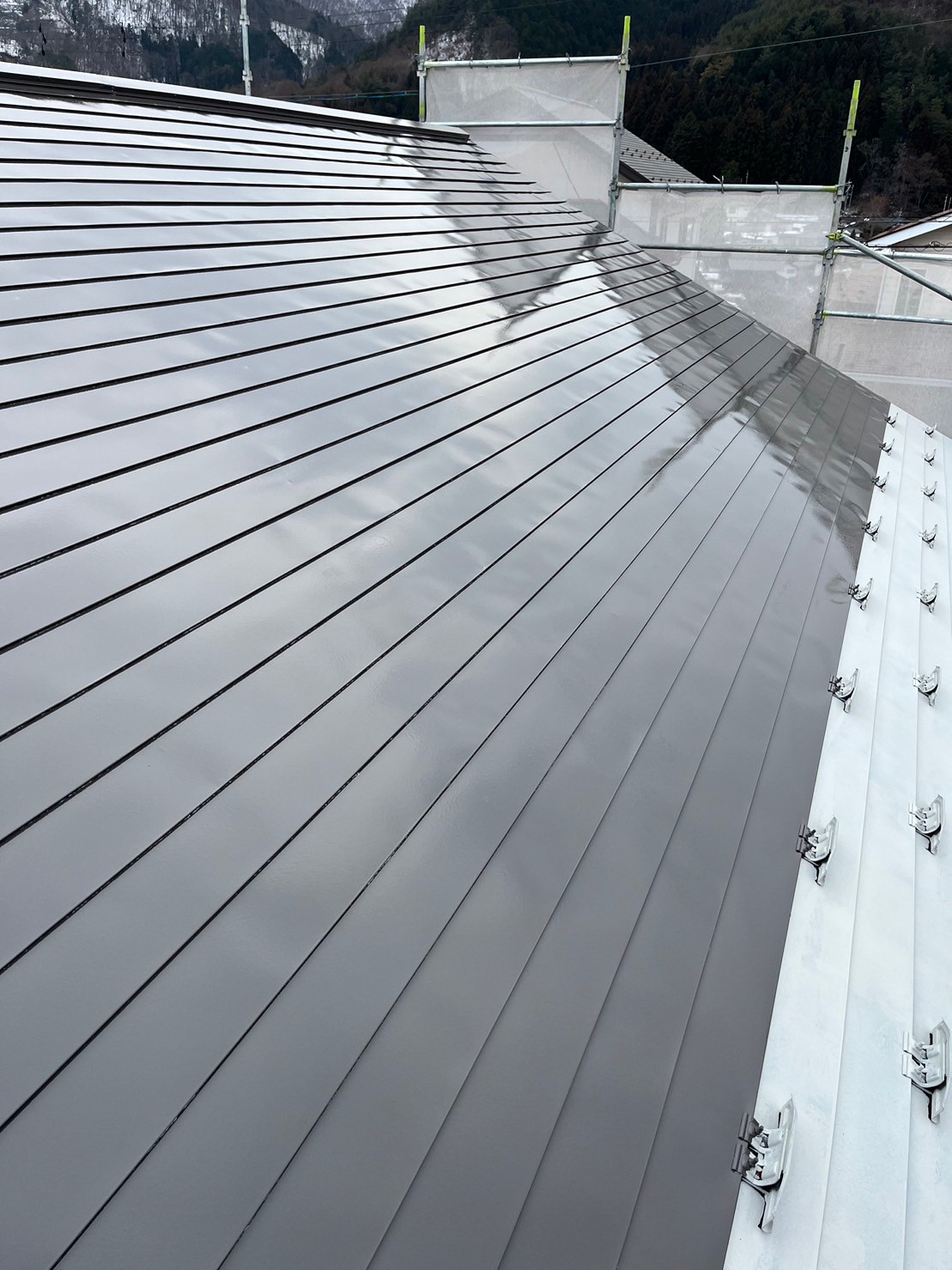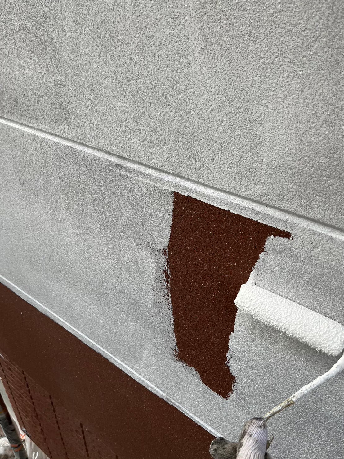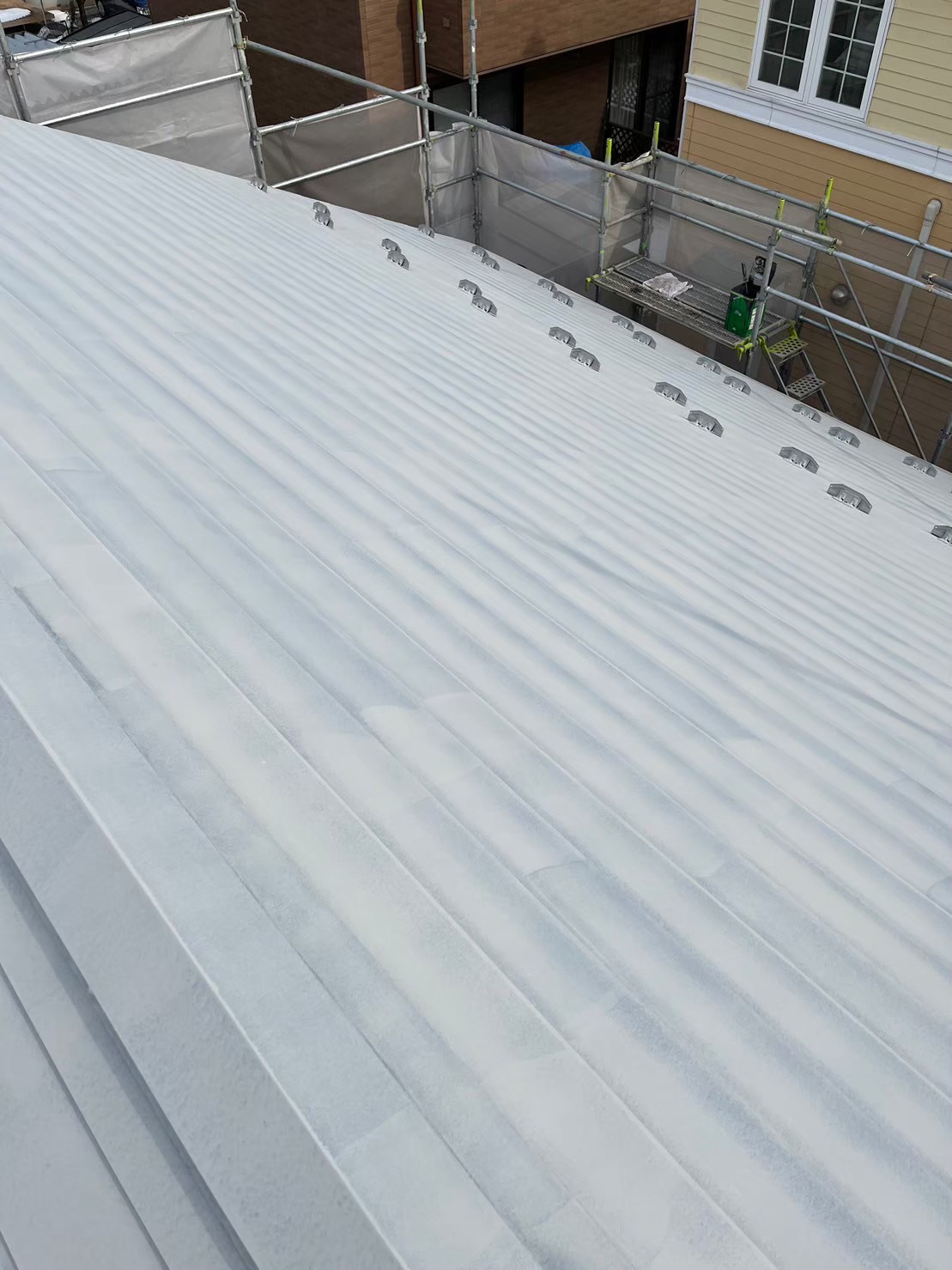 屋根塗装の下塗りの様子です。錆止めプライマーを下塗り致します。