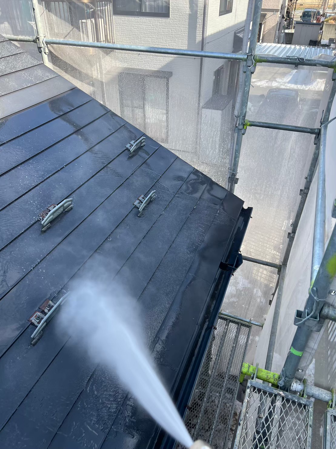 まずは洗い方です。屋根から外壁へと洗っていきます。