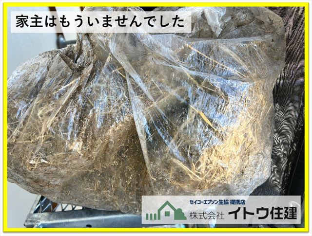 撤去すると大きなビニール袋がいっぱいになるほど大きなものでした。もう家主はいなかったので動物虐待はしていません。