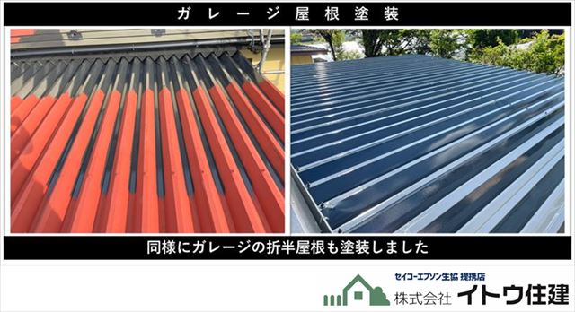 折半屋根は山と谷からなるギザギザした屋根で、ガレージや工場などの大型の屋根などでよく使われている屋根の形状です。塗装するには広い面が少ないので職人泣かせの屋根の形状です。