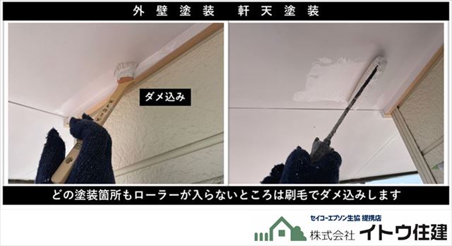 刷毛でダメ込み、広い面はローラーを使うところは屋根と同じです。