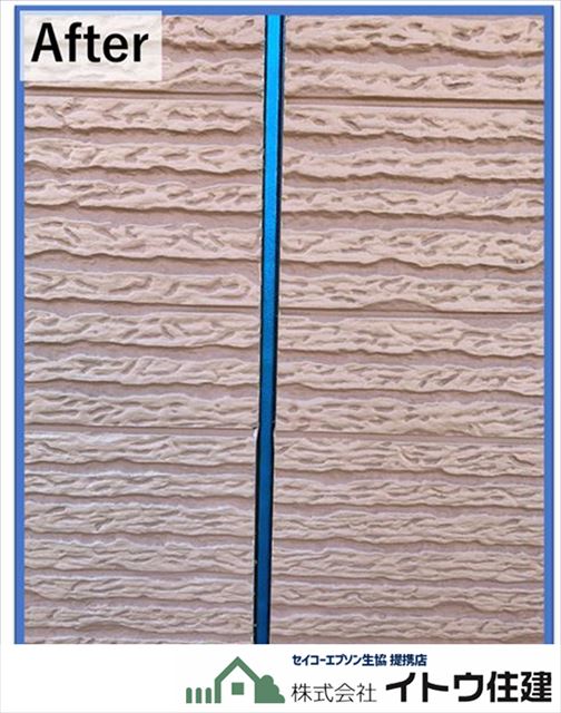 これでサイディングボード間の目地からの水の侵入は心配いりません。高耐久のシール材を使ったので10年以上は打ち替える必要はないと思います。ただ、外壁にとって重要な部分なのでたまに劣化具合をチェックしてほしいと思います。