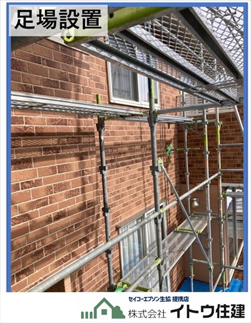 シーリングは高い位置まで打たれているので、足場が必要な作業です。安全、安心な作業のため足場の設置は必須です。シーリング打ち替え工事は一軒丸ごとやって15万円~30万円、足場は20万円~30万円なので、工事費用の半分くらいは足場代になってしまいます。もったいないので足場が必要な工事、外壁塗装や雨樋交換などと合わせてやると効率よく足場を使うことができます。今回の工事はシーリング打ち替えと屋根工事でした。
