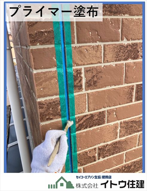 次に、目地にプライマーを塗っていきます。