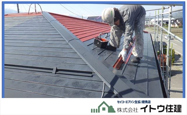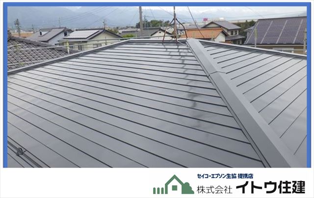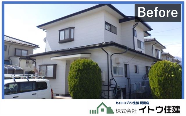 安曇野市で行った屋根塗装、外壁の金属サイディングカバー工法の工事の様子をご紹介します。