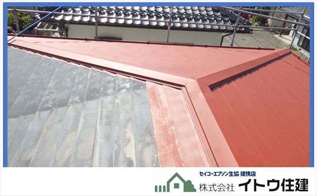ご依頼当初は雨漏り補修の話でしたが、仮設足場代やランニングコストを考え屋根塗り替え・外壁金属サイディングを併せて工事する事になりました。