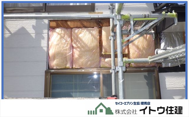 雨漏りでボロボロになっていた断熱材(グラスウール)を新しい物に入れ替えました。