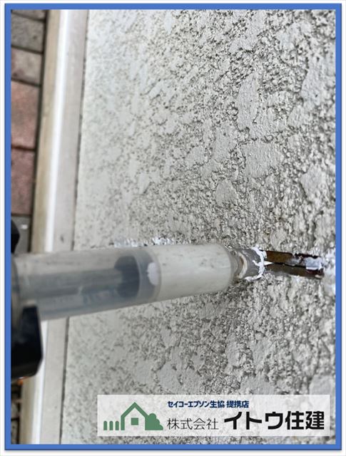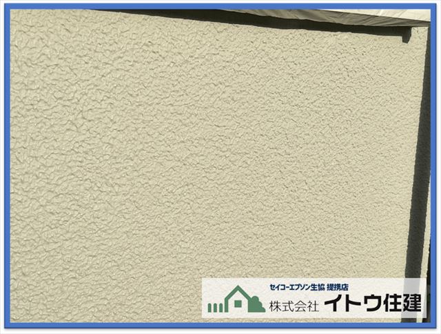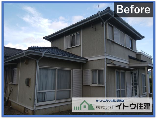 モルタル外壁で一部崩れているところがあり、外壁自体汚れた感じでした。インターネットでいろいろ調べられていて、断熱塗料をご希望だたので、関西ペイントの外断熱塗料ドリームコートを提案しました。従来の塗料の5倍の断熱性が期待できる塗料です。