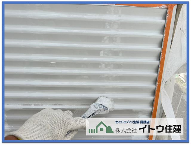 外壁以外の付帯部の塗装です。雨戸があったので一旦外して雨戸の塗装を行いました。雨戸だけ塗装しないでおくとせっかくきれいになった外壁が台無しになってしまいます。