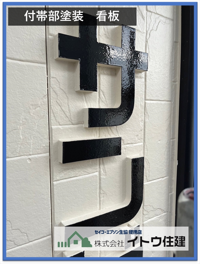 今回はアパート名の看板も塗装しました