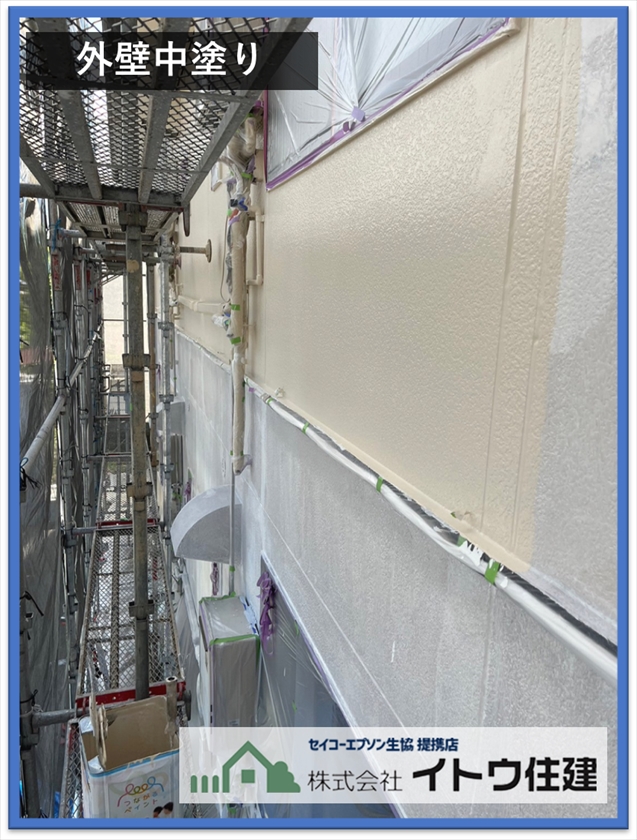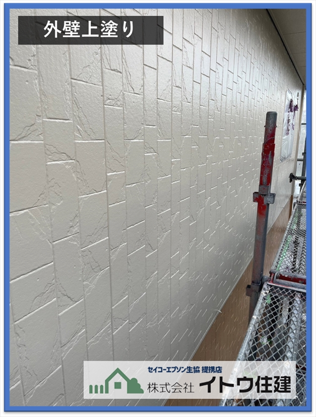 屋根と同じく塗料の持つ機能を塗装する工程です。