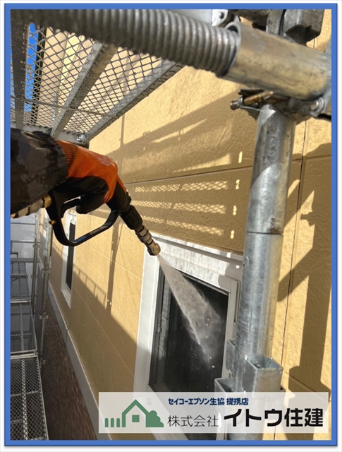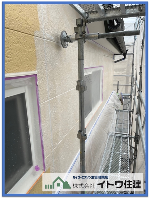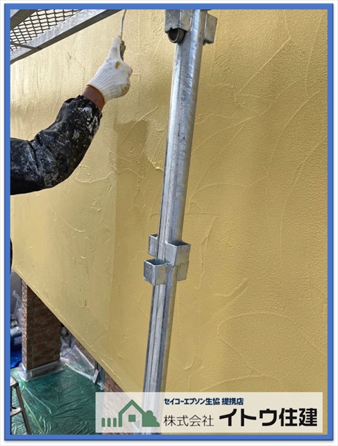 屋根と同じく塗料の持つ機能を塗装する工程です。