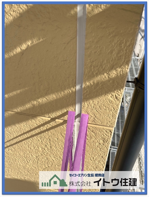 最初にサイディングボードとボードのジョイント部分の目地に打たれているシーリングを打ち替えます。シーリングははじめペースト状ですが乾くとゴム状になる防水材で、塗膜と同じく紫外線や風雨で劣化します。防水材なので劣化するとそこから水が入って外壁に不具合が生じます。定期的なメンテナンスが必要です。