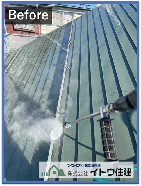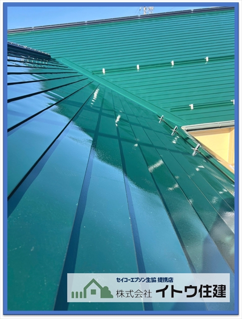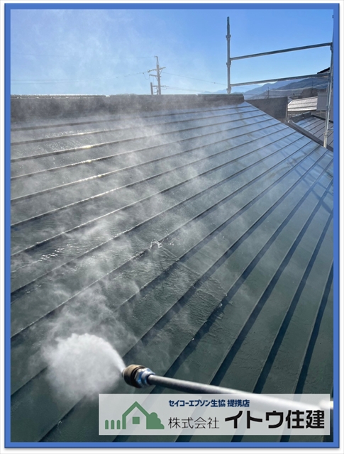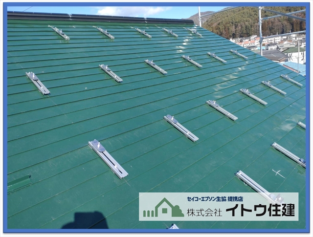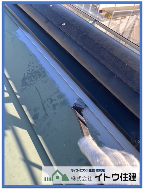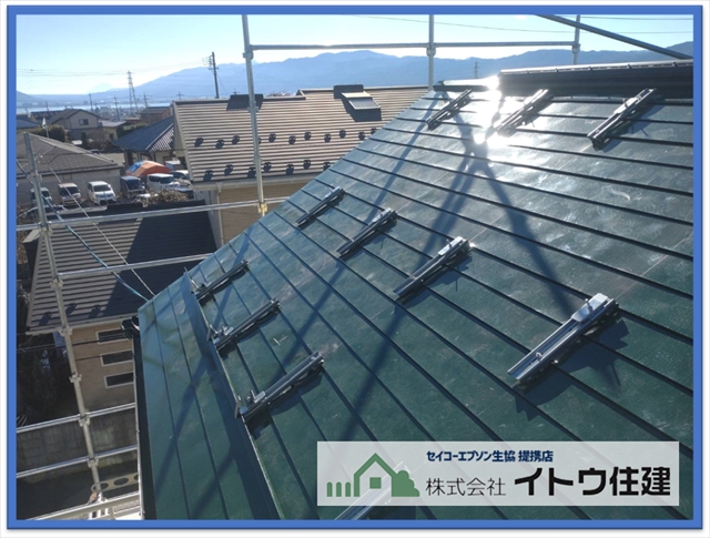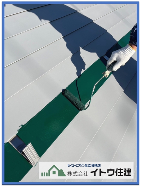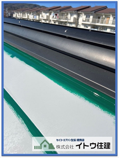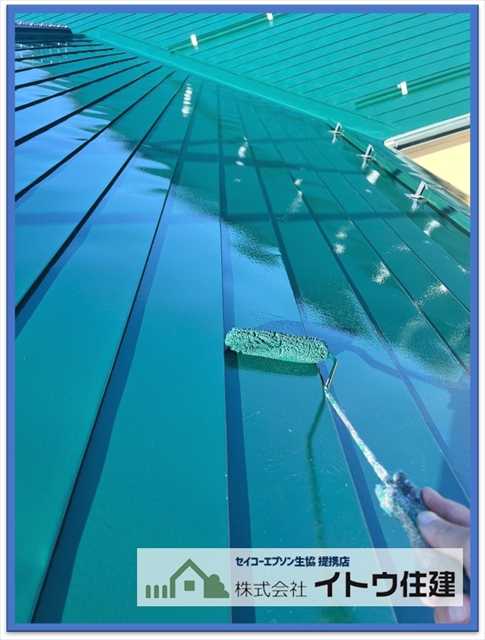 松本市屋根・外壁塗り替え:太陽光パネル設置前に金属屋根を塗装