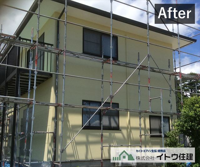 茅野市外壁塗装|濃い色の外壁は要注意!白く褪色した外壁に高耐久フッ素塗料を塗装