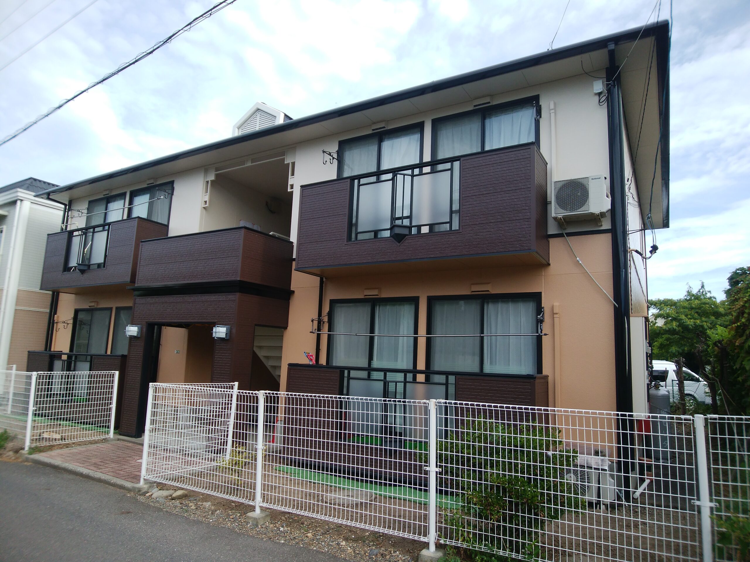 松本市アパート屋根外壁塗装|パナソニック建築アパートの修繕工事の様子