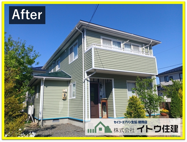 東筑摩郡山形村外壁工事:対候性が高いメンテナンスフリーの樹脂サイディングのカバー工法